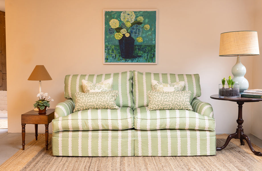 Drawing on British design heritage and with a nod to the classic Howard sofa; the Argyll sofa is perfect for any space. It is expertly made with coiled springs and is supremely comfortable. Available as a fixed or loose cover with a choice of flat or frill valance. Seat cushions are available in feather wrapped foam or full feather. Back cushions are full feather as standard.