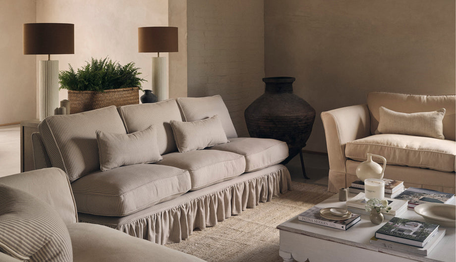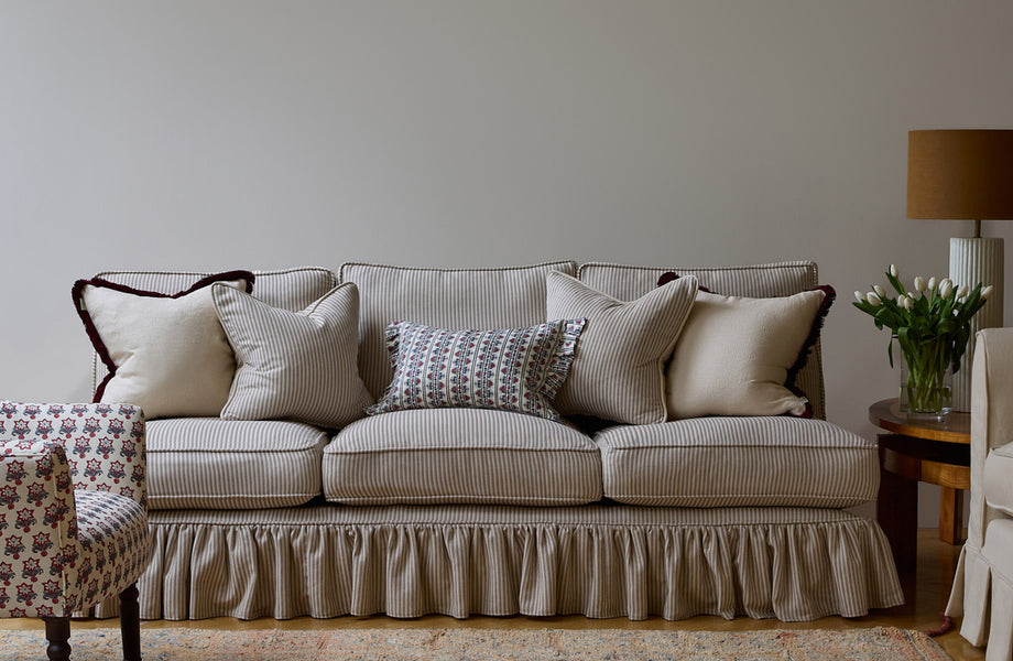 This elegant armless design sits perfectly in a traditional or modern interior. The simplicity of the Cavendish sofa means it looks fabulous in a sitting room, kitchen or at the end of bed. Available with a loose cover with a frill or flat valance. Seat cushions are available in feather wrapped form or full feather. Back cushions are full feather as standard.