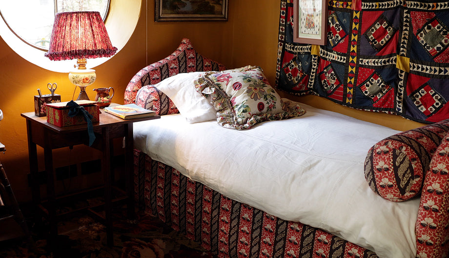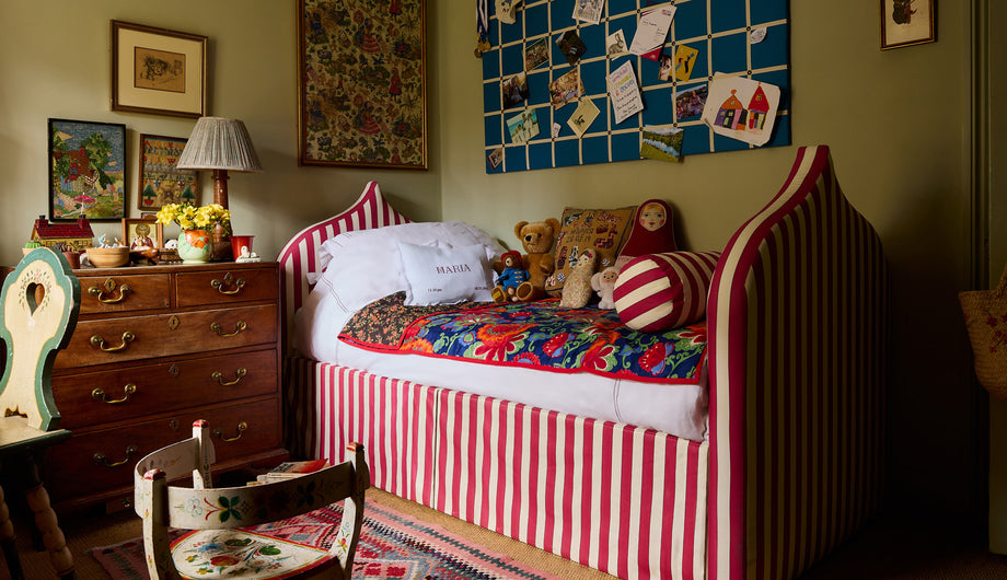 The Gretel Bed was designed with Alexandra Tolstoy and works beautifully both as a bed or daybed and therefore looks wonderful in either a bedroom or study. The Cupola design was inspired by illustrations of fairytales and the book ending of the head and tailboard and the stunning loose cover creates the feeling of a lovely enclosed daybed.