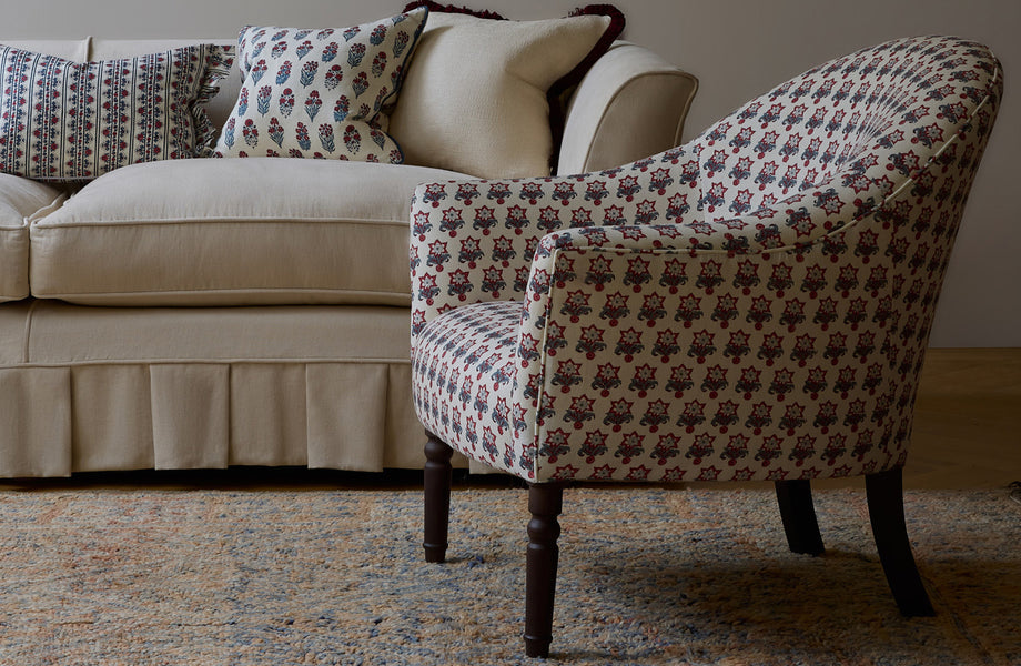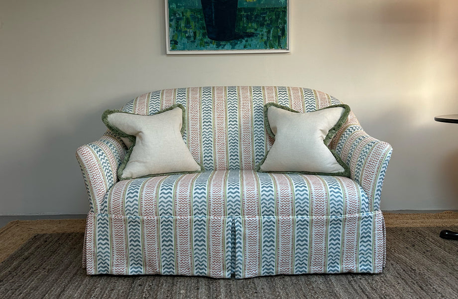Based on a 1920s design, sofa is part of our 'Perfect' collection. This design works perfectly in a bedroom, hall or bay window. It has a small footprint with a generous seat which makes it ideal for small spaces. Available with a fixed cover, flat valance or loose cover with frill valance.